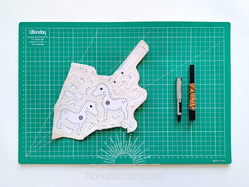 Use stitching prongs or a 1mm hole punch to punch the stitching holes directly on top of the paper.